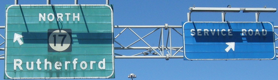 Follow the NJ 17 NB exit in the first photo, and you'll come to the split in the second photo. Take the service road exit and you'll come to the last photo, which is courtesy HNTB Corporation.
