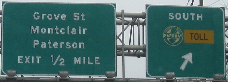 An earlier sign at the exit to NJ 120 that featured old VMS with reflective dots and likely also button copy, courtesy Chris Mason.