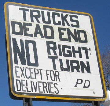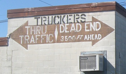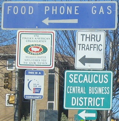 Ramp signs on that Secaucus exit to Paterson Plank Rd. You know you have a problem when the police are handpainting signs on state property and even a building owner pitches in to help. A long time ago, there was a bridge over the Hackensack River if you turned right, but that was a long time ago before most current truckers were even alive.