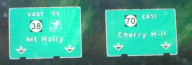 Westbound at the end of NJ 38 (which is considered an NJ 70 multiplex by signage but not technically), culminating in the US 130/US 30 circle that has east-west flyovers for the heaviest movements - and a rare triple-left turn for the one from 38 West to 130 South. Visit US 130 below for photos from that circle.