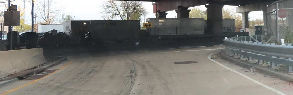 The EB approach, featuring the Harsimus Branch and the 1900 Pennsylvania Railroad bridge to the right that now carries PATH. NJ 7 and the Harsimus Branch both opened in 1930.