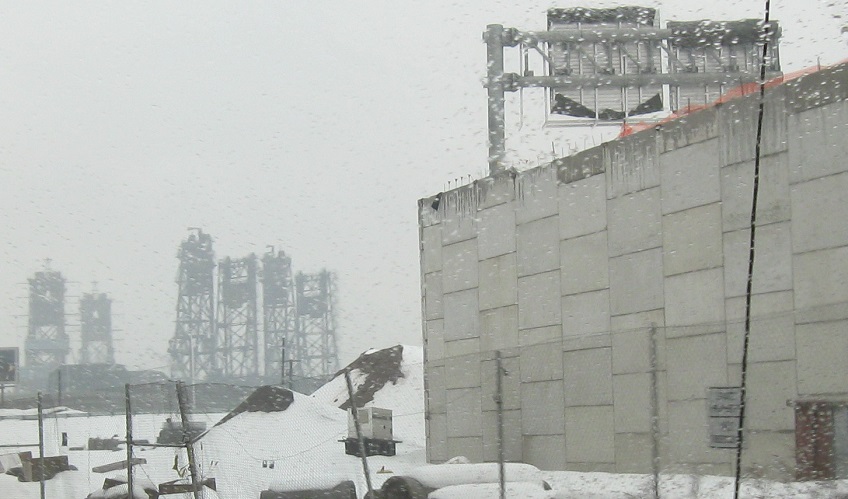 Back west past the same empty piers to construction of the main span, to be floated in once the approaches are done. The 5th photo features a pedestrian stair tower at far left and even more missing girders on the pier next to it, since this is where the future EB ramp to US 1/9 Truck will take off in the path of current NJ 7.