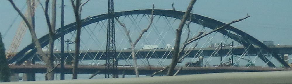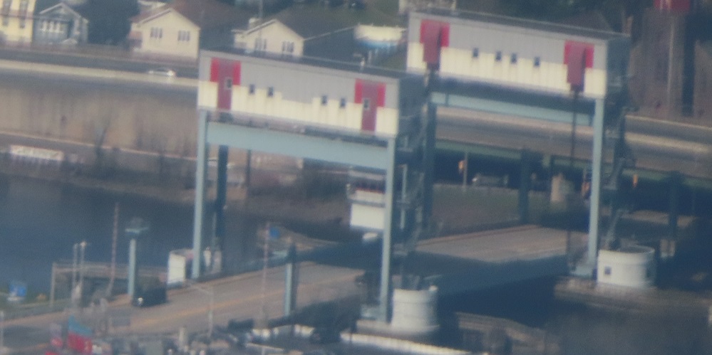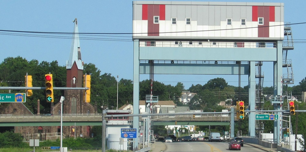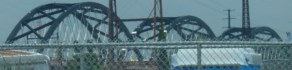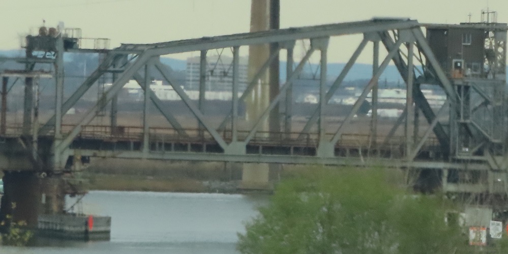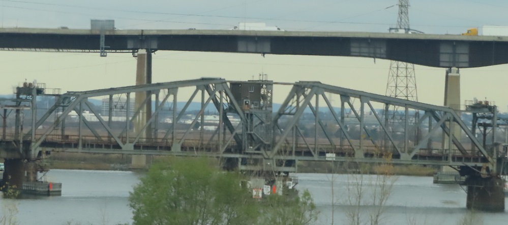The original Portal Bridge can't be seen from ground level because it's a drawbridge, but its fixed span successor is much taller.