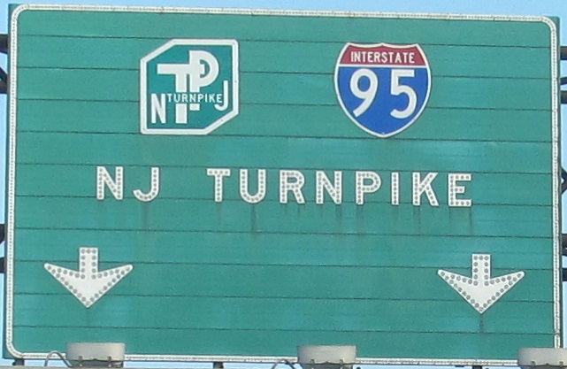 Left and right sides of a fairly standard Turnpike SB entrance sign, although the arrow placement is a little wonky. Enjoy the button copy while it lasts!