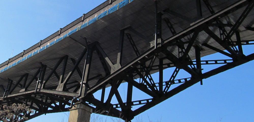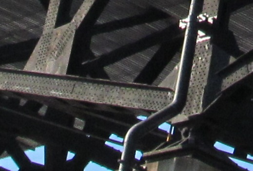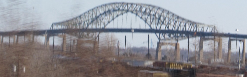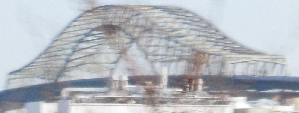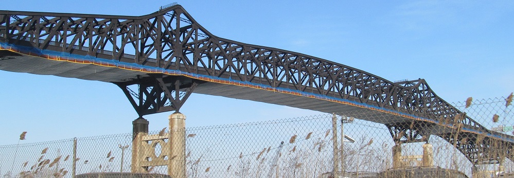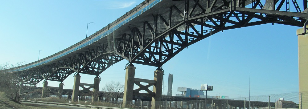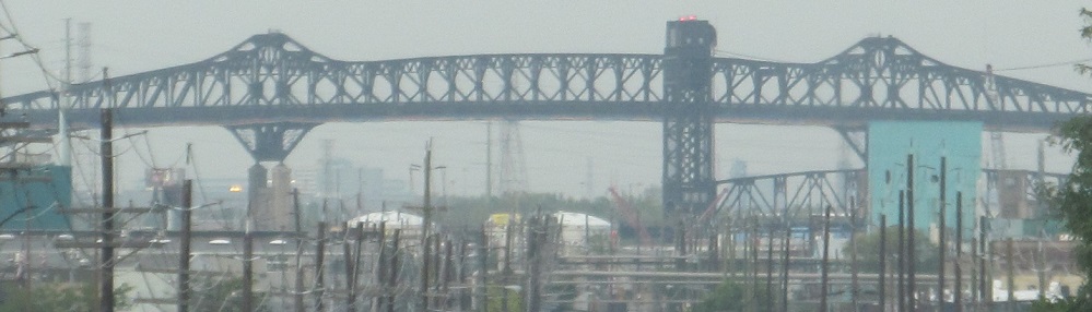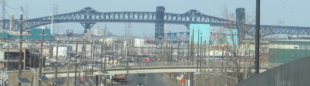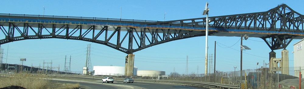 To the southeast from Doremus Ave., the Newark Bay Bridge on I-78. To the north, the Pulaski Skyway on US 1-9. Both are winners in the structural beauty contest. The lower right truss in the Skyway photos is US 1-9 Truck over the Passaic River, a bit less graceful.