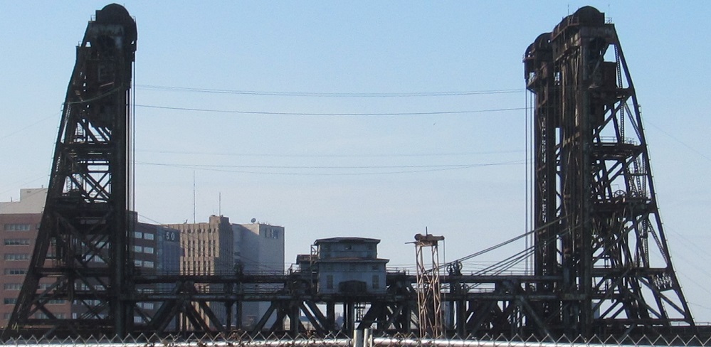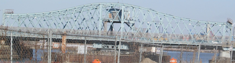 Looking north from the west side of Penn Station at the 1935 Dock Bridge, carrying the Northeast Corridor over the Passaic River.