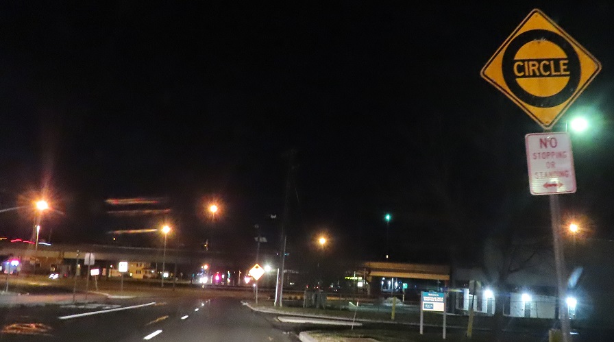 206 south leaves the circle. 28 east bears left in the circle and picks up 206 north.