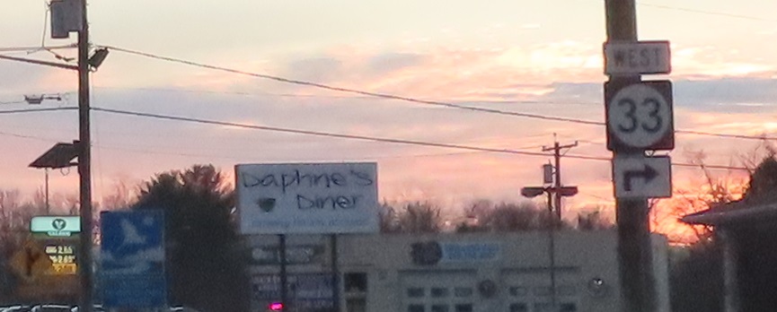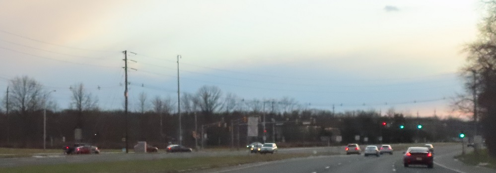 130 south at Hickory Corner Rd, taken 11/28/02 by Charlie O'Reilly. In 2002, there was no left turn onto 33 east, so traffic was signed along Hickory Corner.