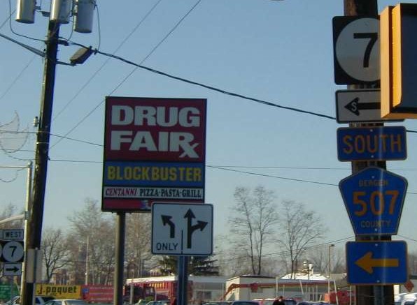 Missing 507 shield (and East sign for 7) heading away from that intersection in Kearny, Hudson County. 7 west/507 north are in N. Arlington, Bergen County. Taken 9/24/06.