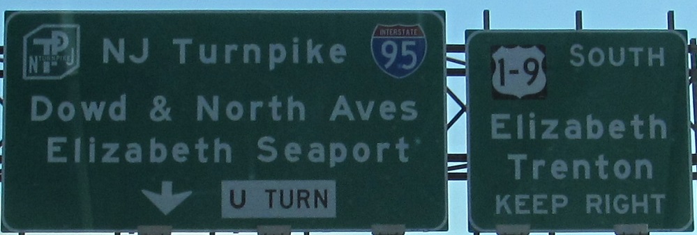 US 1-9 runs a gauntlet of lights in northern Elizabeth and comes to its only exit at Elizabeth Ave. The homemade sign is across from the end of that ramp at a driveway. The lights are usually better timed than this.