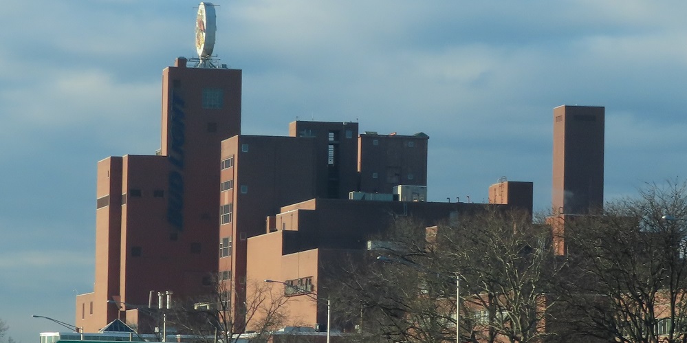 The classic Anheuser-Busch building and another Liberty sign in the Local lanes, of that very crackly first generation.