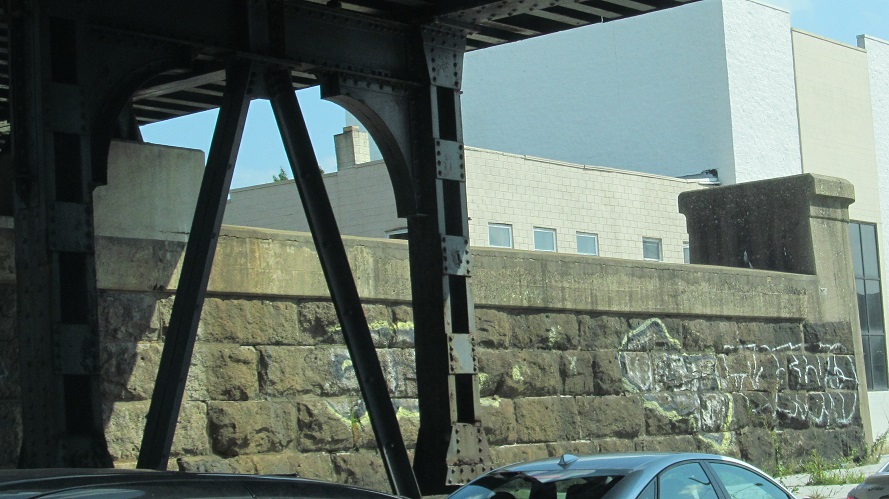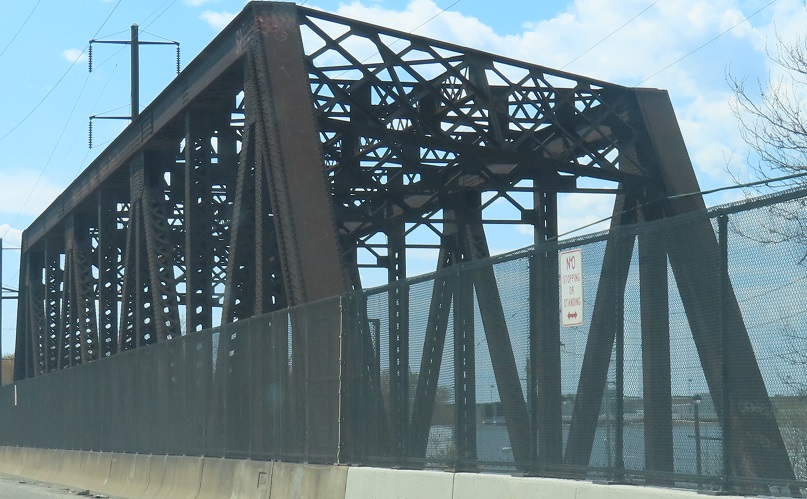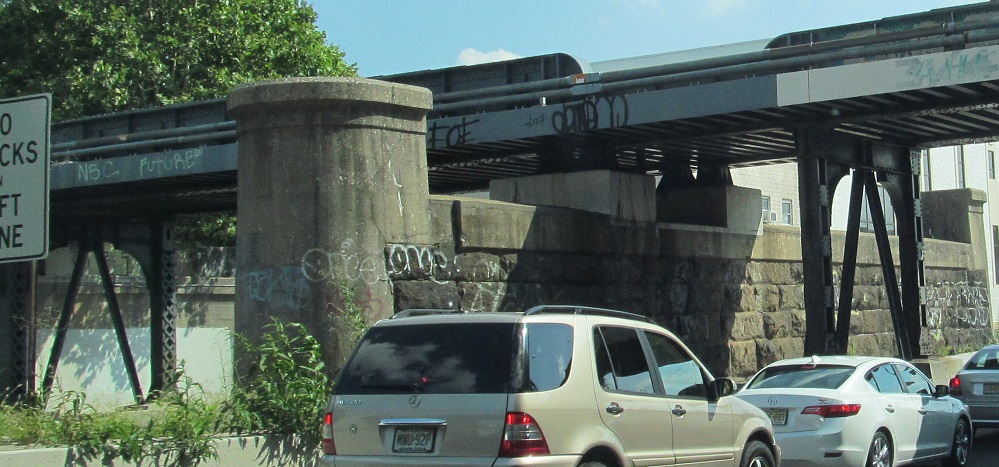 Just past the above sign is a small bridge with this stamped into it. Tonnelle Avenue (yes, one l for the Circle, two l's for the Avenue - although you'll find just as many references for both spellings at both locations) has long been US 1-9, and has long been over capacity, being only four narrow lanes with no hope of widening. Before 1953, all US routes ran concurrent with state highway designations, much as in Georgia nowadays, and this was the route of NJ 1. NJ 1 had followed what is now NJ 440, US 1-9, and US 9W since about the time of the designation of the US Highway system in 1926, creating an interesting US 1-NJ 1 multiplex. This bridge dates from long enough ago to refer to the NJ 1 part of the 1/1-9 highway (just as some old bridges on US 46 refer to NJ 6).