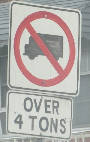 This was on the ramp to Tonnele Circle in 2014 as NJ 139 was being reconstructed through its viaduct/"tunnel" through the heights of Jersey City. Font over 10'-6" wide use alternate sign. And fix the inches sign.