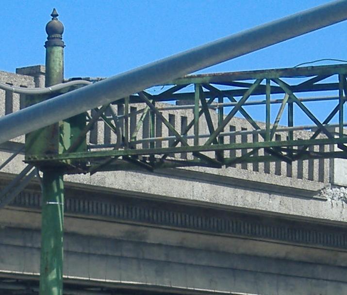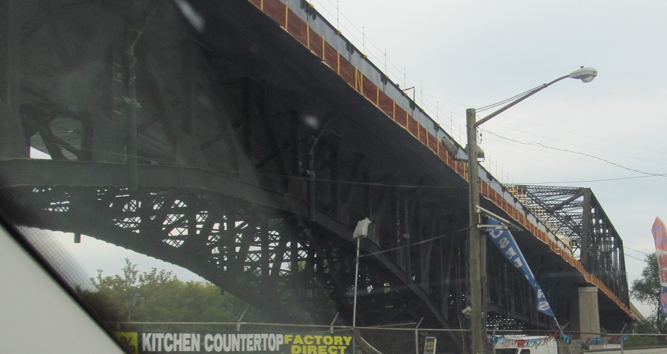 Under the bowed 1938 Central Ave. overpass and a straight rail one behind it. Traffic must have been growing dramatically in this area for the old road to get upgraded less than 10 years after a new freeway was built.