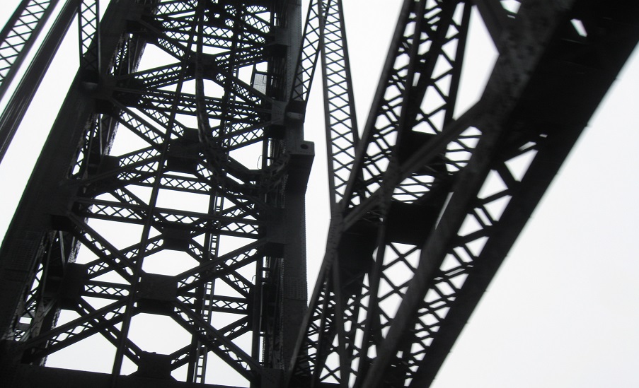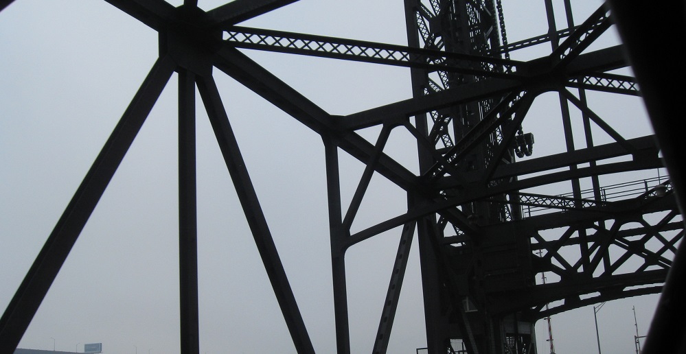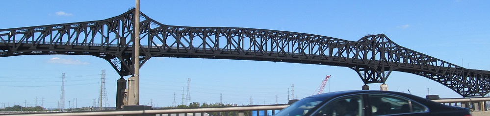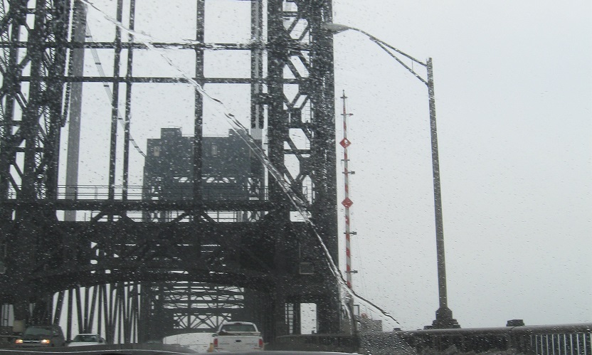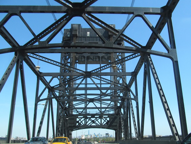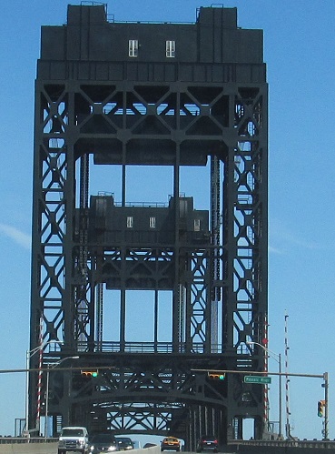 Across the Passaic River drawbridge, with views north of the Pulaski Skyway. The next to last photo shows the heavy-duty chain for the draw span.