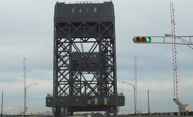US 1-9T gets a second drawbridge over the Hackensack River. There's a reason cars use the Skyway. The "TRUCK" with ampersand combo sign is a classic way to present this route that's being ditched for "1-9T" shields.