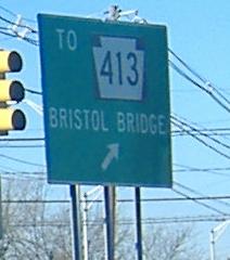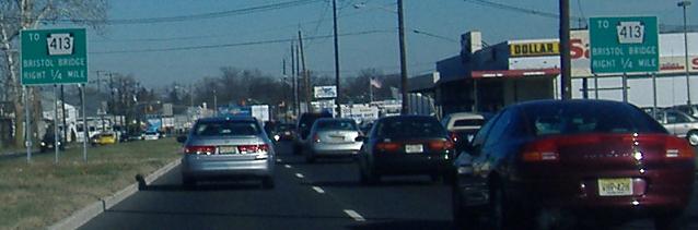 US 130 (here NB) does the ultimate disservice to NJ 413 by referring only to what it will be on the Pennsylvania side, right on down the ramp in the final photo. Just because it's not state maintained on this side doesn't make it excusable. Only the old telephone sign saves this run of signs.