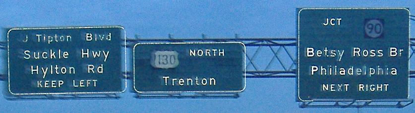 NB signage through the brief US 130/US 206 multiplex. State-name shields for all!