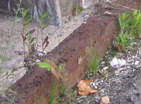 The old right shoulder curb is rusting away, and the concrete is spalling. Even though there's no more traffic here, weather will slowly take its toll.