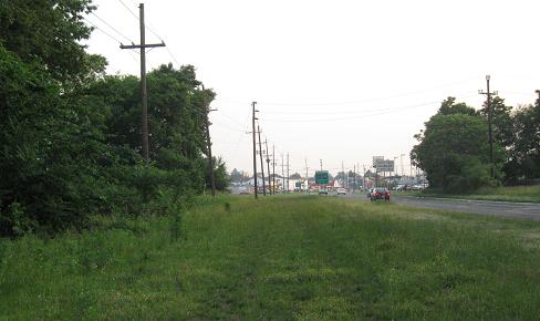 This is it for the old bridge. You can see the path traffic used to follow to the south, defined by seeming old tire tracks and the wide utility pole setback. To the north, current US 130 NB swoops in from the right, under the utility poles, and comes back into the old alignment.