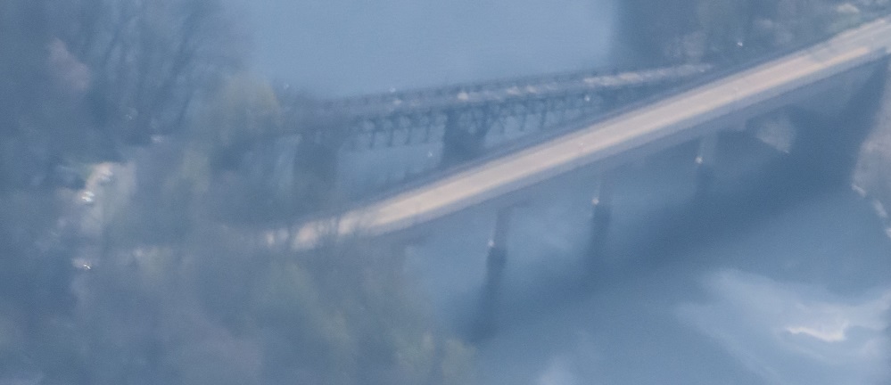 As US 202/CR 511 enter Boonton, they cross the Rockaway River where it enters Boonton Reservoir. That's the closer, higher bridge as I fly over them to the west. The lower bridge behind it to the east is now a pedestrian bridge but was the former Washington St. mainline, and is really only notable for the below-deck truss. In addition to traffic having a much narrower crossing, it had a pair of sharp curves at the north end (left) to get up to where Washington St. is now. That is now a dead end where the residents can rest much easier.