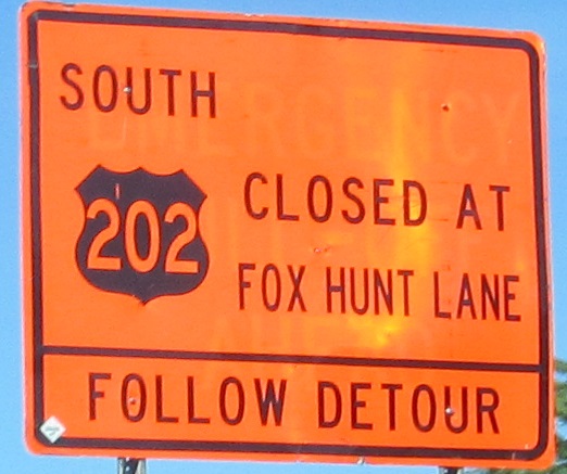 Older SB signs, but neither is terribly old. Somerset County likes white instead of yellow legend, although the arrow is distinctly yellow to throw you off. The Ortho Drive sign is not old by any means but has been steadily getting worse ever since it was installed.