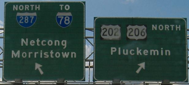 Older signs than most on the multiplex, and the only thing you'll hear about I-78 from US 202/206 NB.