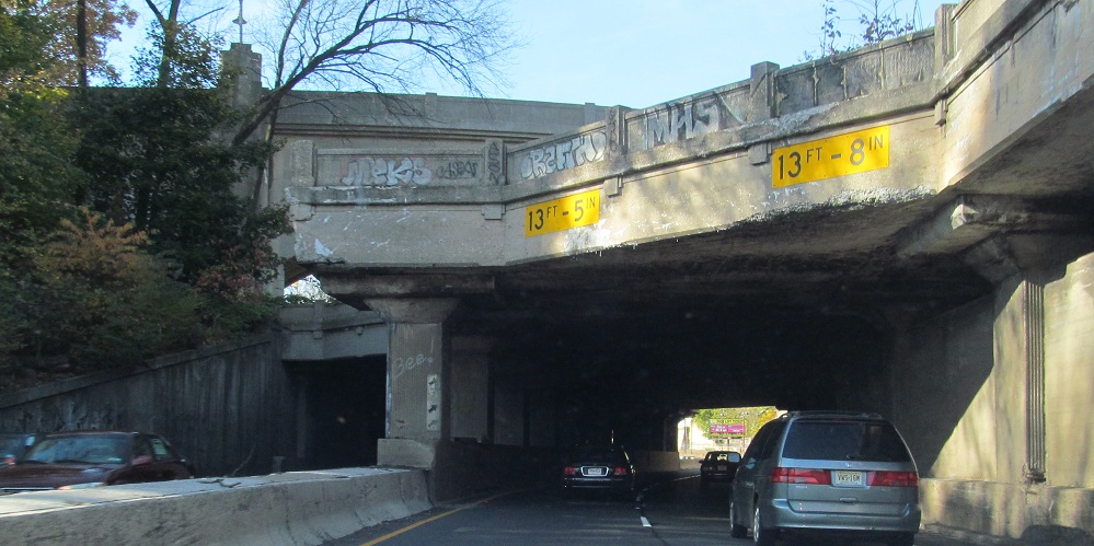 Again EB and WB (x2), the southern entrance to Weequahic Park is underneath an active but equally old railroad trestle, which itself is beneath the entrance to the park, which is at street level. Is it any wonder US 22 floods in this area?