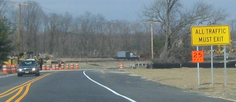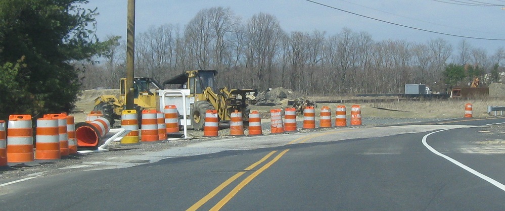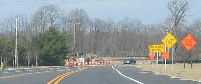 In March 2011, a small piece of bypass had already opened up to Walters Rd., maintaining access while the rest was worked on. Photos head northwest from US 322.