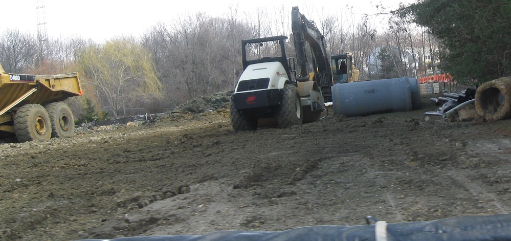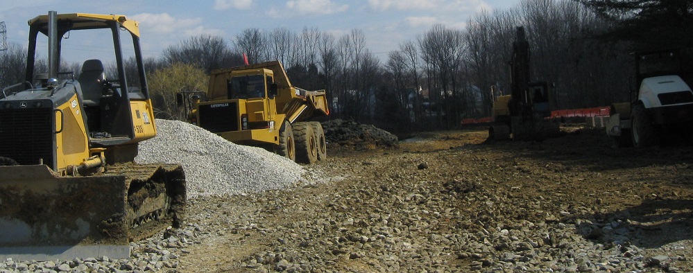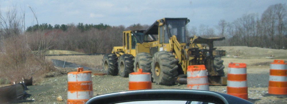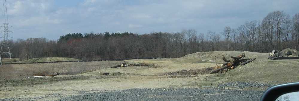 Looking east, there's a lot of clearing with no road taking shape. Actually, there's a cemetery in the back, and several of the graves had to be moved to make way for the new road.