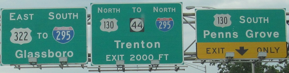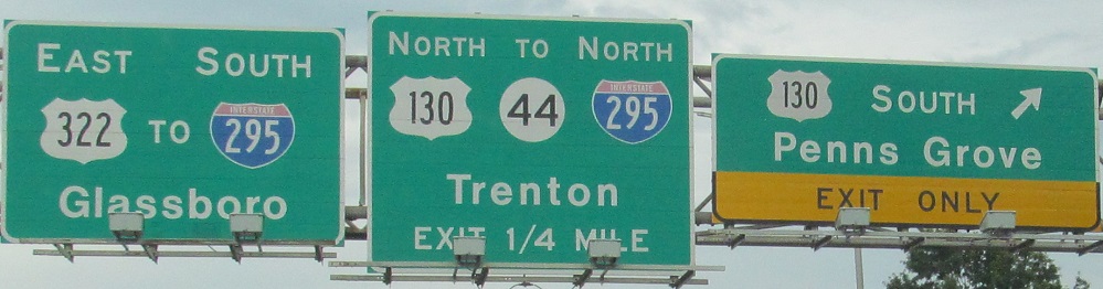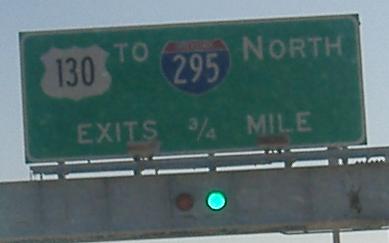 Older stuff heading through the US 130 interchange; the welcome sign is non-reflective and unique as far as surviving signs go (which photo do you like better - larger or clearer?), and the exit gore matches the westbound one immediately below as the only pieces of button copy left at the interchange.