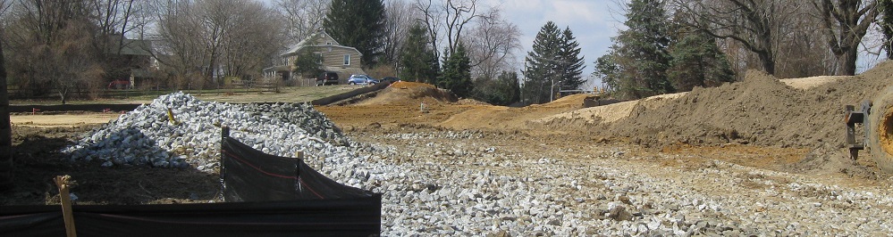 There was one cross street open during construction, Earlington Ave. Looking west, you can see straight through to US 322.