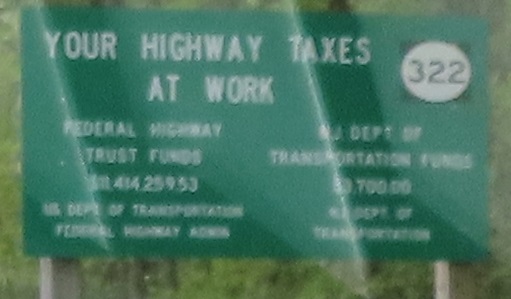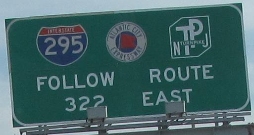 Westbound, the beginning of NJ 42, which heads straight northwest out of US 322 toward Camden, while US 322 heads more westerly after this point along the route of CR 536 (they multiplex all the way to the state line, technically, meaning all of the photos up till now have been on both routes). The significance of this point awaits...
