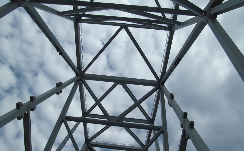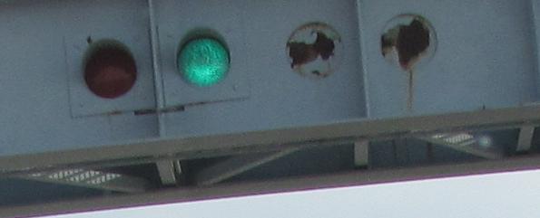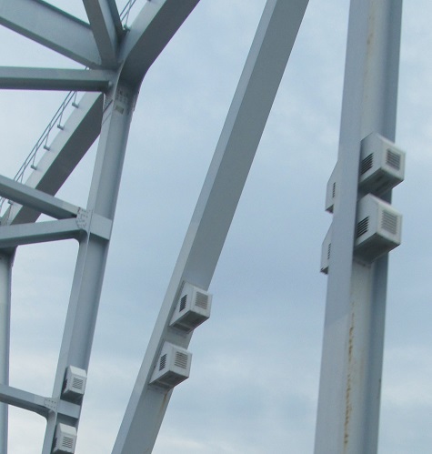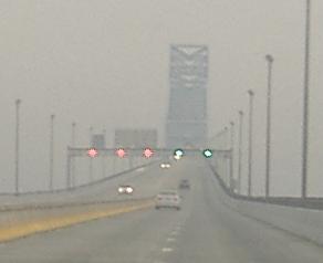 EB across the Commodore Barry Bridge. There were once six lanes, or at least enough sets of lane use signals for that many, but clearly there are only five now. Five 12-foot lanes is a lot more pleasant than six 10-foot lanes, especially when traffic never even fills four of the five. Searching for answers on the decorative vents? birdhouses? on the girders.