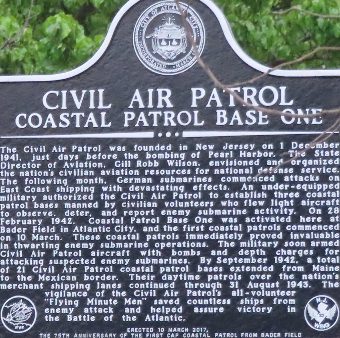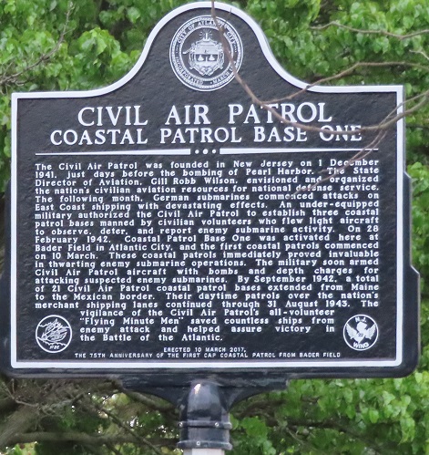 This nice sign is WB at Porter Ave., easier to see by foot (at least from April to November) due to trees in the way. Since I got this one square, click for a closeup that will let you read all the text and see the logos nice and large. The air base became Bader Field, and you may want to see my Atlantic County page for more here.