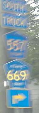 Oldish signs eastbound at the beginning of the US 40/NJ 50 multiplex (for signs on it, visit the link at the bottom of the page). Apparently Truck CR 557 has been following US 40 since 557 left in the previous photo, but I don't know where Truck CR 559 joined the party.