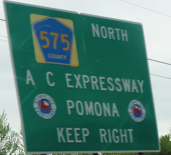 Instead, the two routes go and pick up a third, with CR 575 SB straight ahead for a bit. (Jughandle to the right.) Granted, CR 575 doesn't hang out here for long. I wish there was a county name in the shield, but what really drew my attention was the ACE smooches on either side. It's harder to read the sign with them but they're so cute!