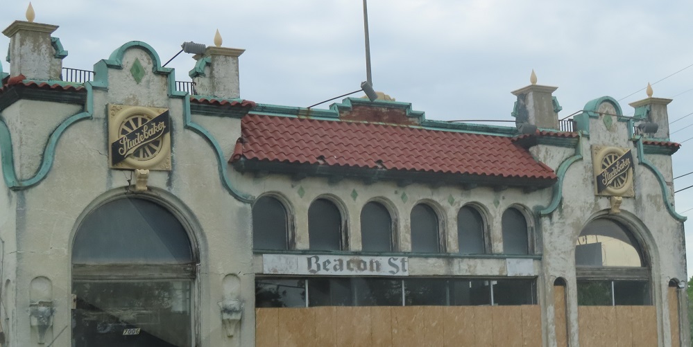 Driving back west past the dealership, click either photo for a classic closeup of the logo.