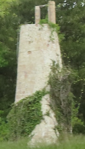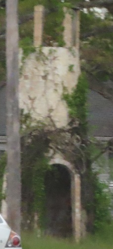 I thought this was an old furnace on the WB side near Fernwood Ave., but despite being built out of cemented stone, it was apparently a tower built to advertise a gas station. The remaining two pillars on top were reportedly supporting a roof as part of a model lighthouse.