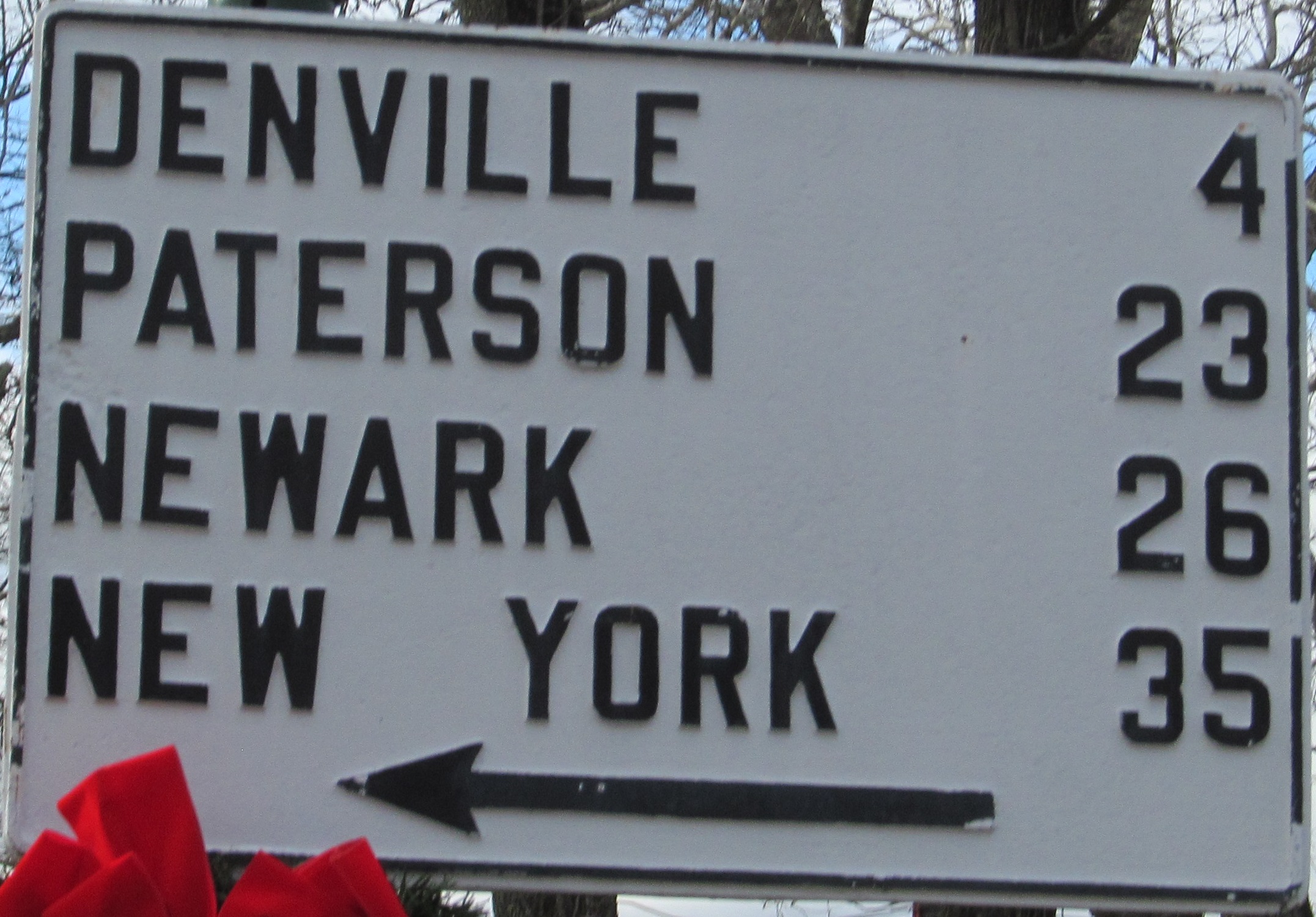 This may be one of the roads crossing your rail. Actually, you can find this sign headlining my NJ 15 page, where it lived until the early 2010s amidst a major reconstruction of 15 at US 46. I'm very grateful to the museum for taking ownership, restoring, and displaying (hey, there's that Oxford comma!) this transportation relic. Click on it for a caring closeup.