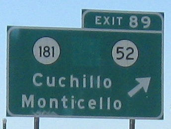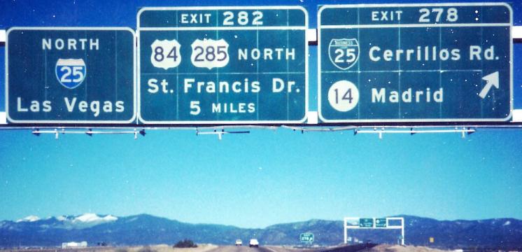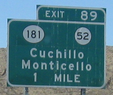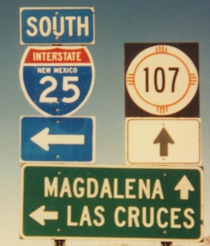 Between NM 1 and NM 181, old US 85 has an abandoned bridge just west of I-25 as both new and old roads split the scenery down the middle. The bridge was closed recently enough that there's still a milepost on it - and if you click through at bottom to the NM 181 page, you'll see that the stub is still signed (improperly) as a state highway.
