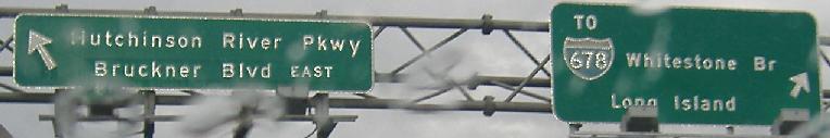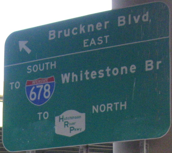 EB in the almost-circle surrounded the complicated Bruckner Interchange, where I-678 (Whitestone Expwy.) and the Hutchinson River Parkway turn into each other below, the Cross-Bronx and Bruckner Expressways cross above, I-95 changes hands from the Cross-Bronx to the Bruckner, and both I-678 and I-295 end. Going anywhere on those higher-level roadways requires turning either before or after the interchange complex.