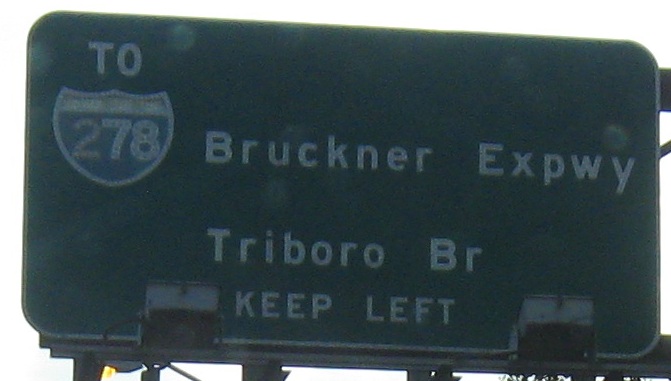 The right side of this photo is small button copy for the WB slip ramp onto the I-278 freeway. The left side is large button copy on the mainline.