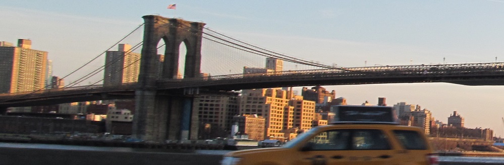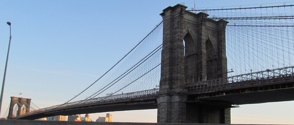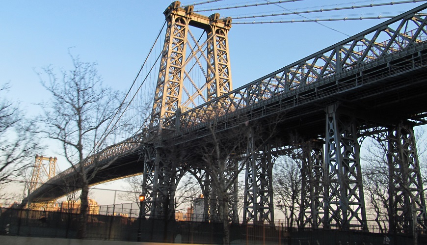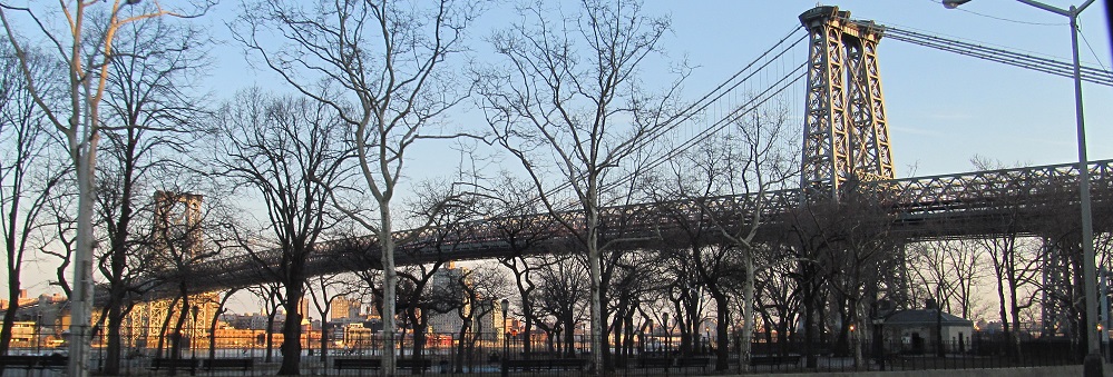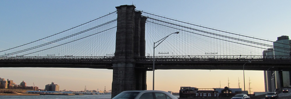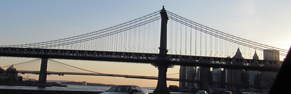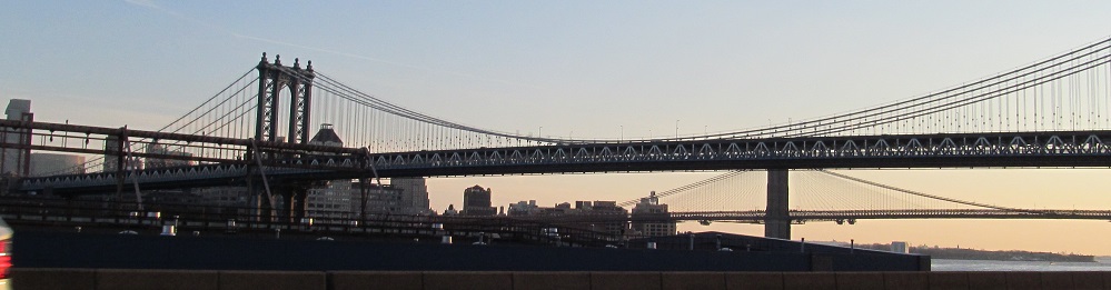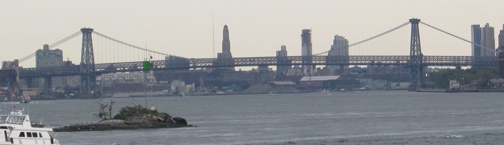 Past the Williamsburg, Manhattan, and Brooklyn Bridges, in that order.