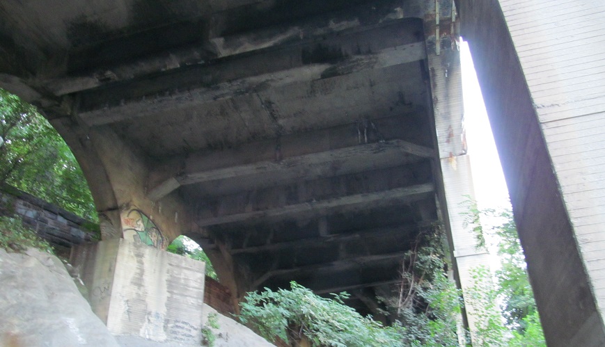 Special, difficult-to-access bonus: Make your way down through Highbridge Park on foot from 175th St., alongside the I-95 NB ramp to Amsterdam Ave., down the hill, past the impromptu skate park, and if you've made all the right turns, you can come down to the arches below the Exit 24 ramps connecting I-95 and FDR Drive. I found many homeless people down there (that I tried to photograph around), so it's not impossible to get to.