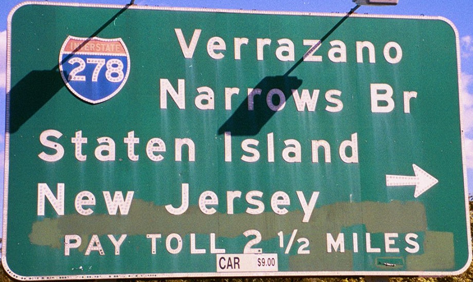 One more old entrance sign, skipping over the Verrazano Bridge (now on its own page) and heading into Brooklyn. This was on 92nd St. EB in Brooklyn (Exit 17) and is courtesy John Krakoff.