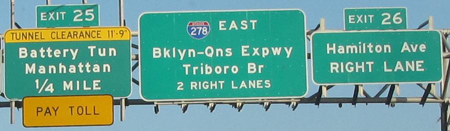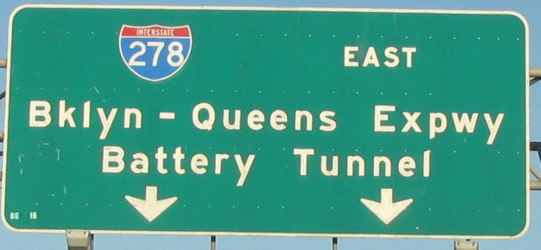 Again, this isn't the BQE at all. The Gowanus Expressway extends from the Verrazano Narrows Bridge to the Brooklyn Battery Tunnel (secret I-478), but for continuity's sake it's signed as part of the Brooklyn-Queens Expressway to the east. The Gowanus was there first, so this is of course unfair.