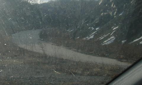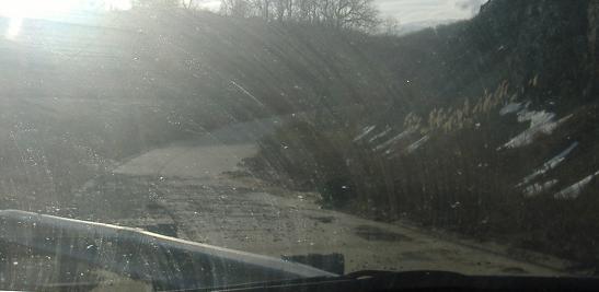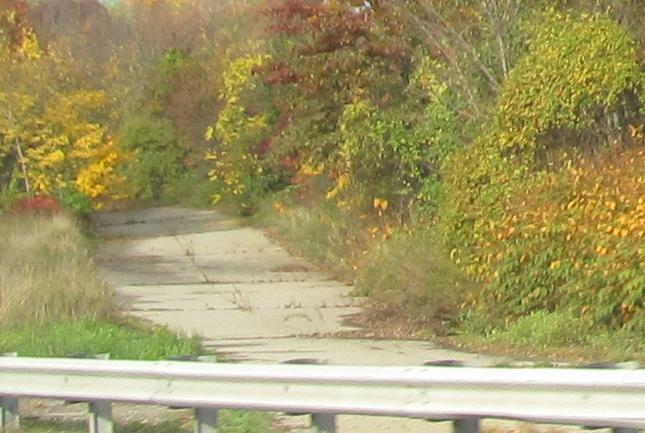 In 2014, lamentably, the old abandoned Exit 13 bridges were removed. I'm passing what's left WB.