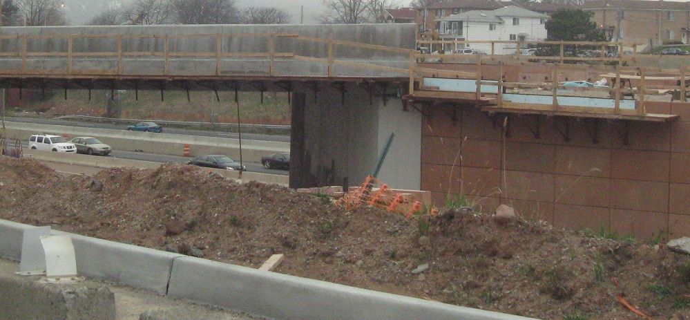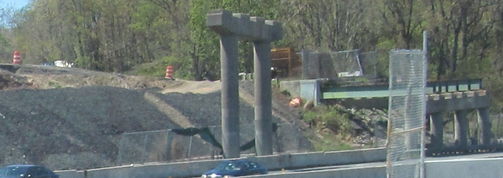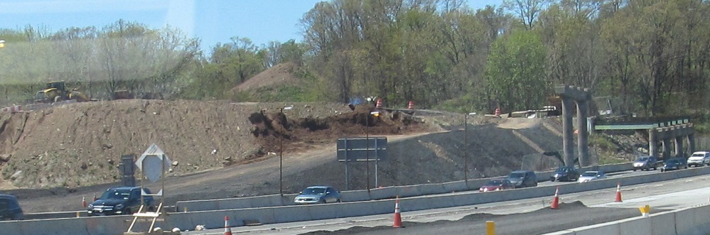 Why is that button copy now gone? Because of ramp reconstruction to turn a mainline EB weave between Exits 14 and 15 into a braided on/off pair. The future Exit 14 onramp flies over the future Exit 15 onramp in these photos, taken from Narrows Road South.