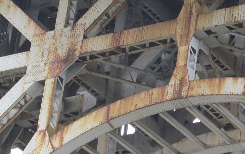 A plethora of bridge views from the Hudson River Greenway, including the Little Red Lighthouse that famously sits by the eastern abutment. The bridge-dwarfing "The Modern" tower is taking shape in Fort Lee, on its way to a modest 496 feet.